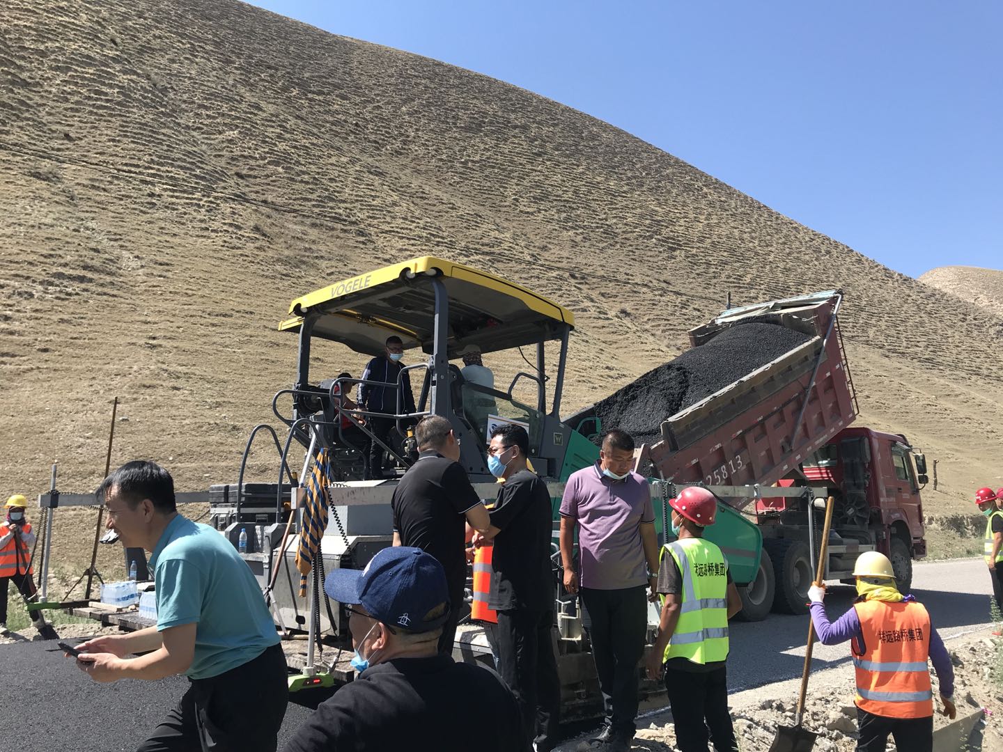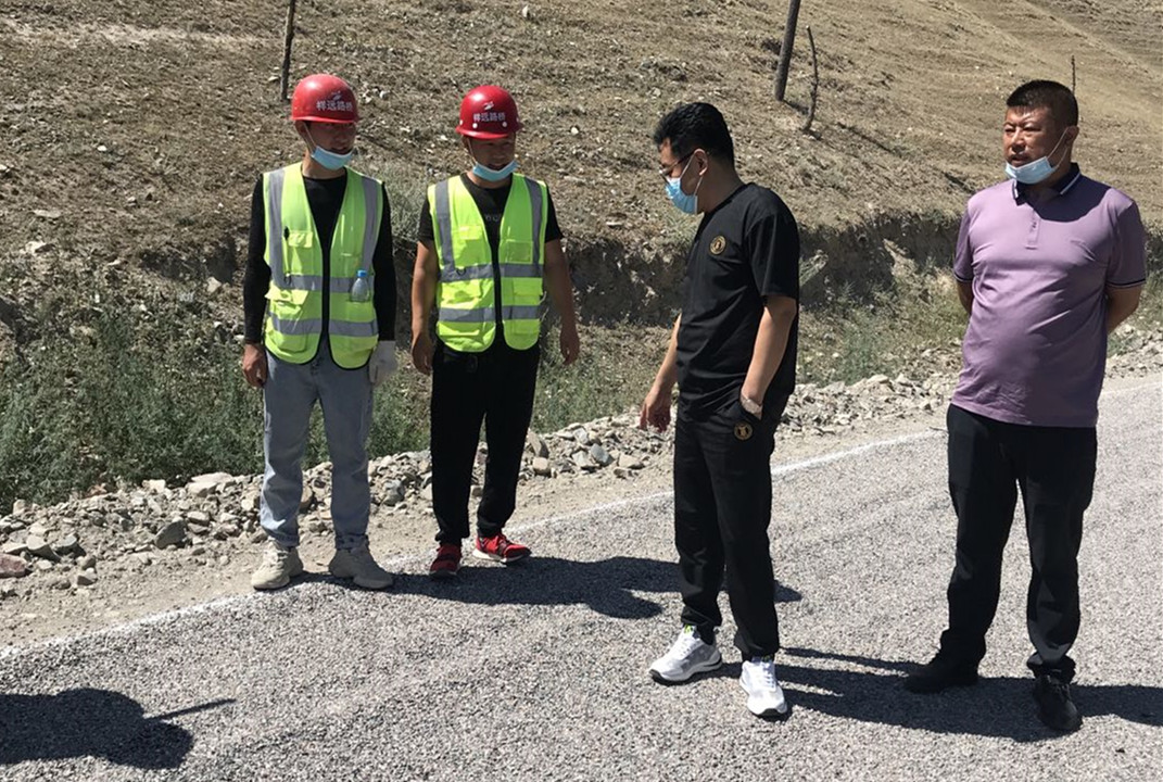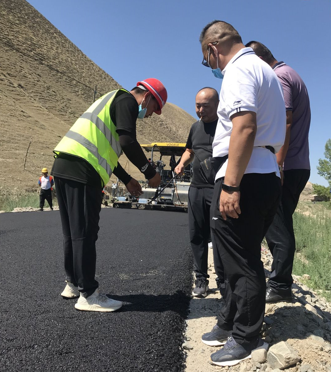 大家首先來到施工現(xiàn)場(chǎng),工人們正頭頂烈日、腳踩高溫緊張的作業(yè),站在離攤鋪的位置幾米遠(yuǎn)都能感覺到陣陣熱浪撲來,就是在這樣的工作環(huán)境下,我們的工人依然堅(jiān)守著。檢查組一行認(rèn)真觀察路面的壓實(shí)度、厚度及平整度等,對(duì)工程安全質(zhì)量措施的落實(shí)執(zhí)行情況進(jìn)行邊查邊看邊問,并對(duì)檢查過程中存在的問題與不足進(jìn)行現(xiàn)場(chǎng)指導(dǎo)。