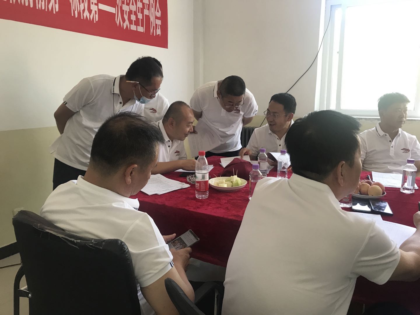 現(xiàn)場(chǎng)檢查結(jié)束后,一行人來到項(xiàng)目部檢查有關(guān)安全質(zhì)量落實(shí)情況等方面的內(nèi)業(yè)資料,對(duì)內(nèi)業(yè)資料中存在的問題進(jìn)行指正。