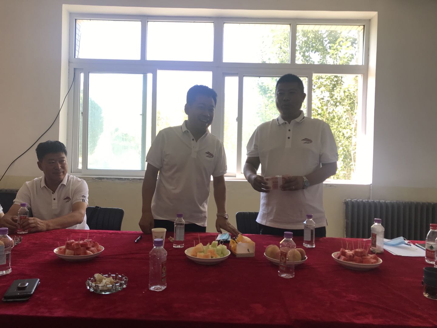 最后,董事長對(duì)項(xiàng)目部所付出的努力和取得的成績給予了充分的肯定,并對(duì)下一步的工作提出了希望和要求:要繼續(xù)發(fā)揚(yáng)艱苦奮斗的精神,強(qiáng)化管理、持續(xù)提升管理水平,攻堅(jiān)克難,切實(shí)保障施工安全,并現(xiàn)場(chǎng)發(fā)放了安全獎(jiǎng)金。